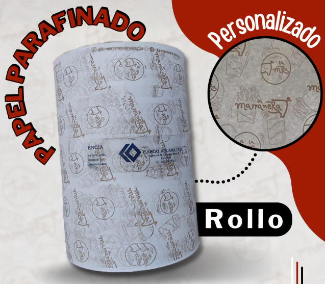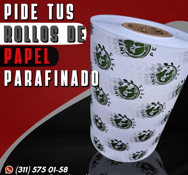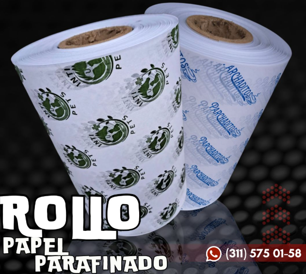 Hojas de papel parafinado, rollos de papel parafinado, pliegos de papel parafinado, papel parafinado impreso en un color, impresión flexográfica de un color, impresión flexográfica rollo a rollo, papel fondeado, papel fondeado en pliegos y resmas.